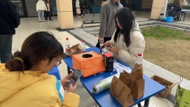 同时在新河党群服务中心,安全服务中心小分队与街道工作人员紧密合作,共同开展防诈安全知识宣传活动,向市民们发放防诈安全宣传资料,提高防诈安全意识。“您好,阿姨!我们是学校安全服务中心的志愿者,今天在这里进行防诈骗宣传活动。您知道最近有哪些常见的诈骗手段吗?”