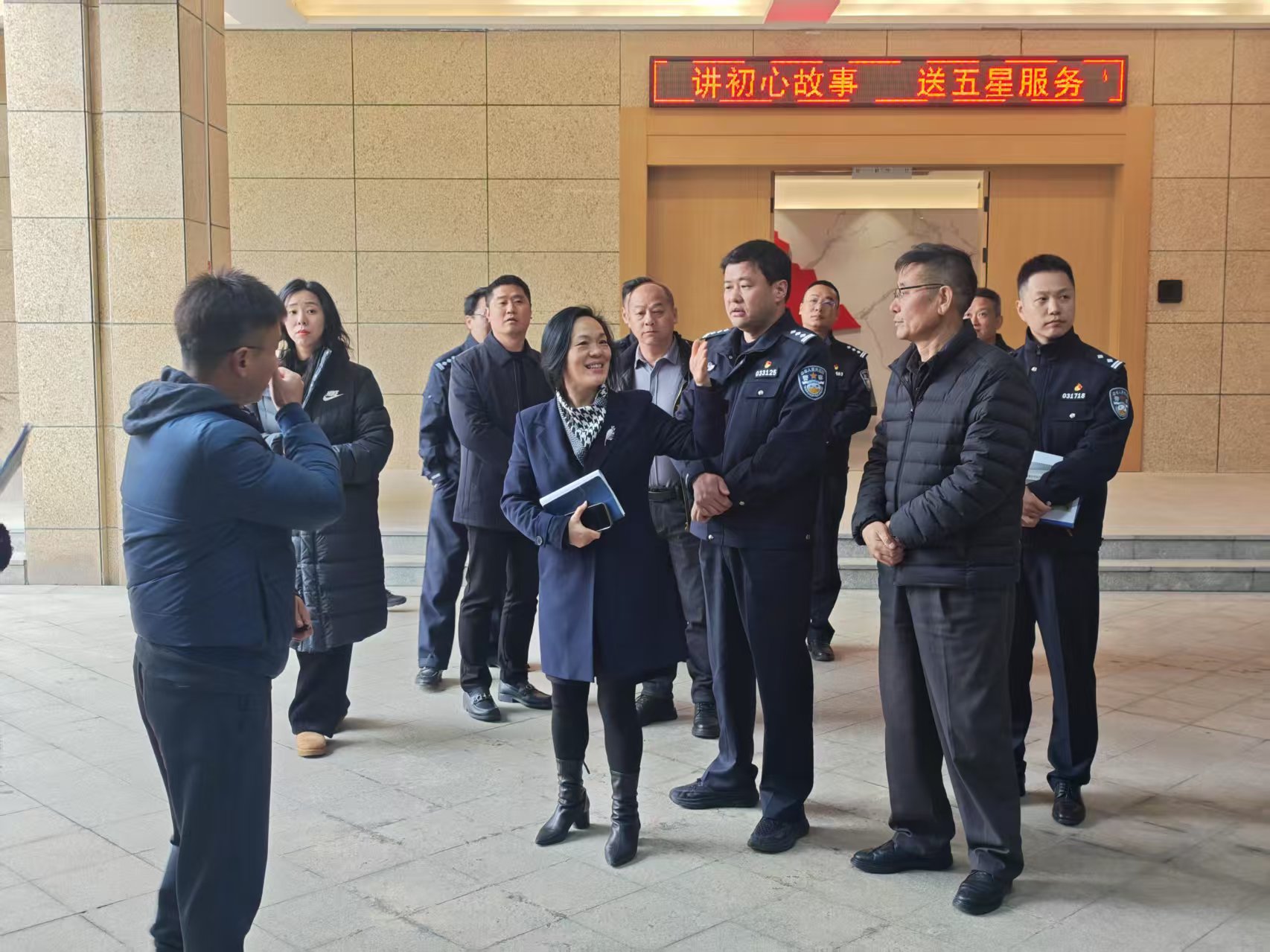 为进一步深入校园安全管理工作,加强校地协同工作,维护校园安全稳定,2月26日下午,龙湾区副区长、公安分局局长叶辉一行7人赴学校调研校园安全管理工作。学校党委副书记、副校长刘玲玲,党委委员、副校长贺文华,组宣统部、学工部、保卫部陪同调研。