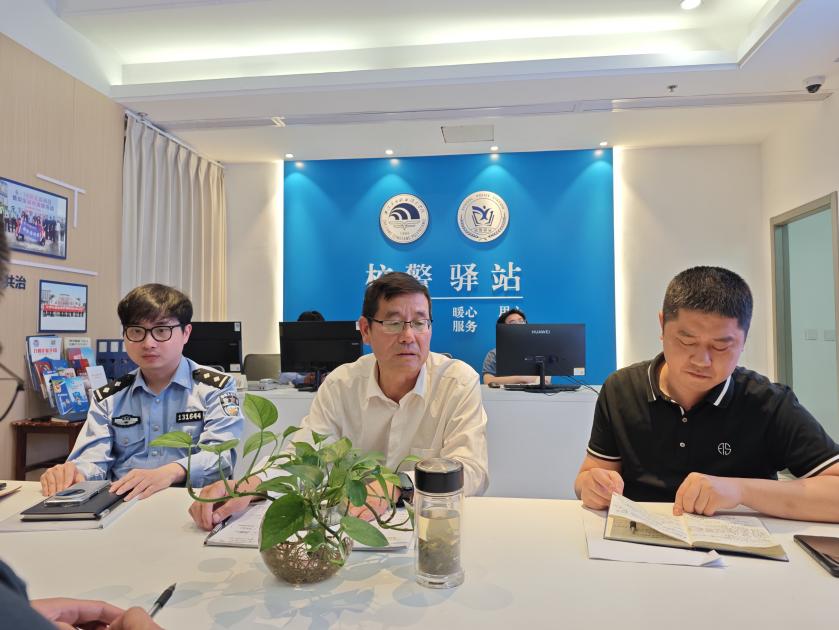 最后,金海派出所陈湘副所长,来校指导校警驿站建设相关工作,校领导、校警驿站教育专员贺文华、教务处副处长李谷伟陪同调研。陈湘提出希望学校能够加大反诈宣传力度,拓宽反诈创新思路,提高反诈宣传效果,降低反诈案件数量,希望能够借助校警驿站多沟通、多联系、多服务,加强警校协作,共促金海平安。