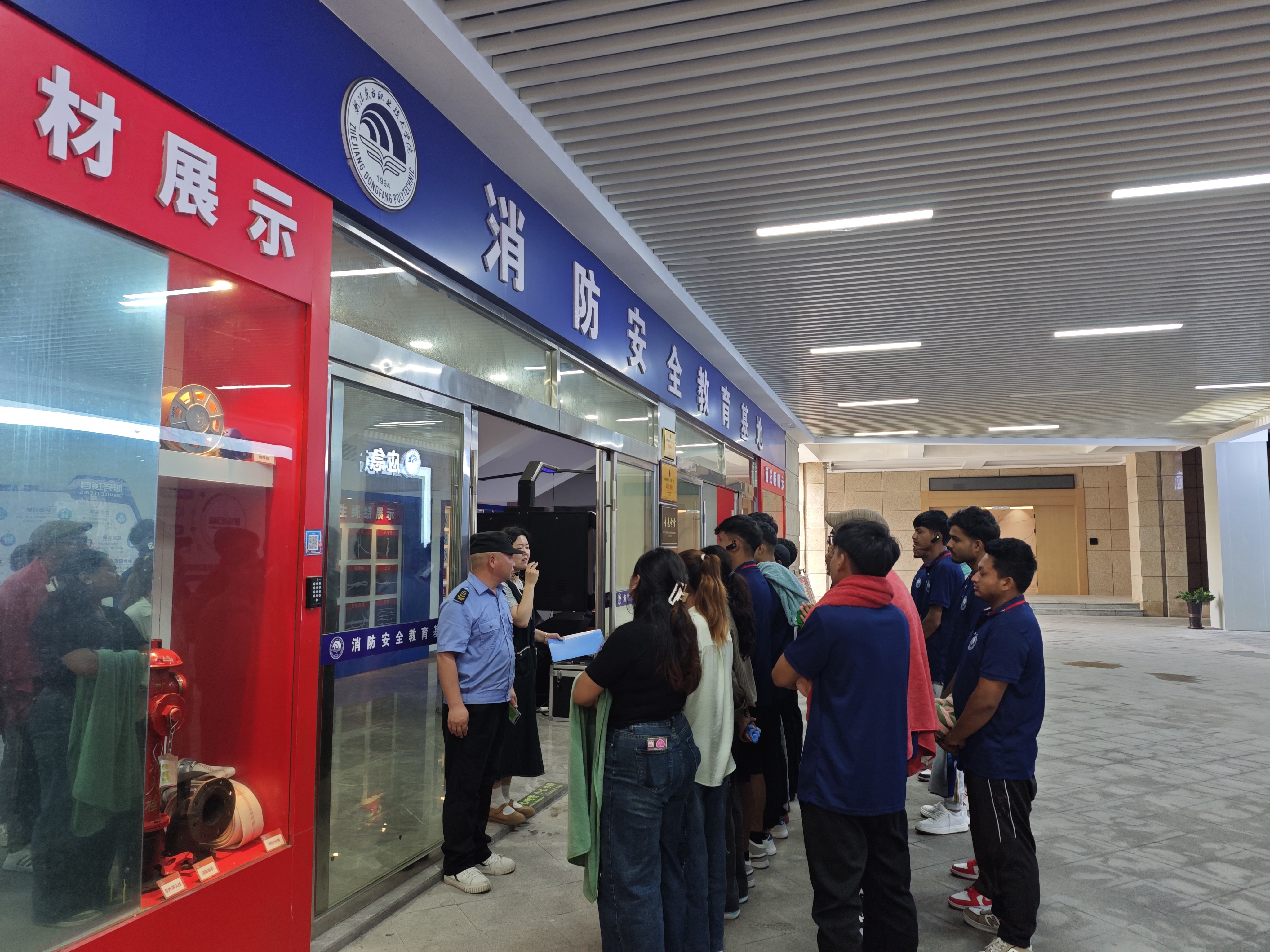 最后,华侨物业陶方春带领留学生前往校警驿站以及消防安全教育基地对留学生进行消防知识培训以及学校消防应急文化传播。同时对留学生进行灭火器实操使用抽查,确保留学生人人会应急,个个会灭火。