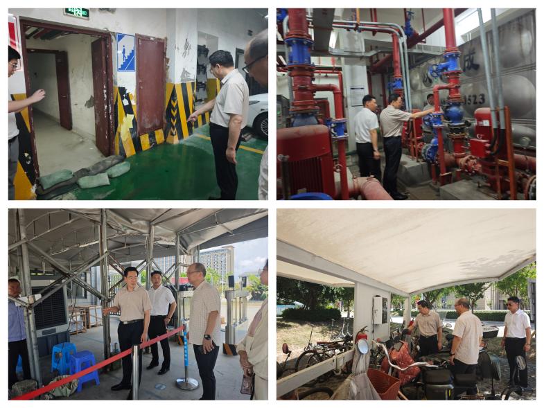 在检查中,后勤处、保卫部相关负责人向项忠副校长汇报了本部门开学期间安全检查、隐患整改、开学准备等情况。