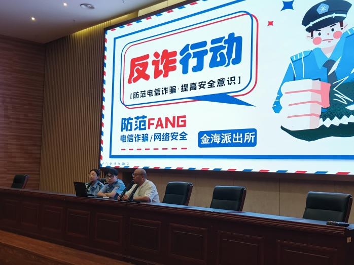 戴世伟结合校园被骗案例,详细介绍了反诈数据分析、常见诈骗类型、如何去防范诈骗等方面内容,同时普及了国家教育、法治教育等知识。