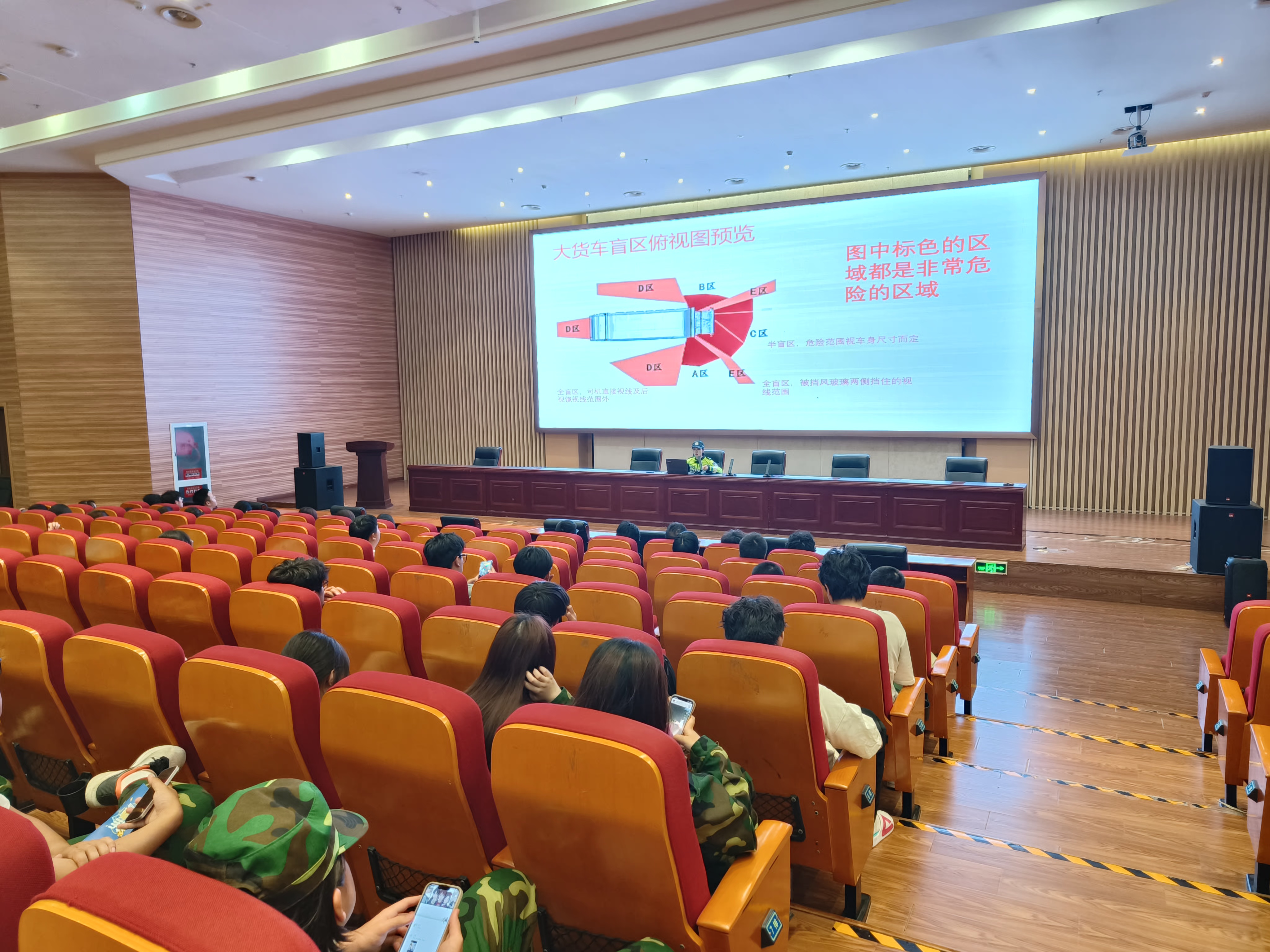 为进一步加强校园安全教育工作,提高师生安全意识,提升师生安全文化素养,9月22日晚,学校组织2025级新生同上校园安全教育第一课,分别邀请了交警五大队民警路遥、金海派出所民警戴世伟、作交通及反诈安全知识讲座。本次活动以“线上+线下”形式,主会场设在学术报告厅,其他人通过钉钉直播学习。