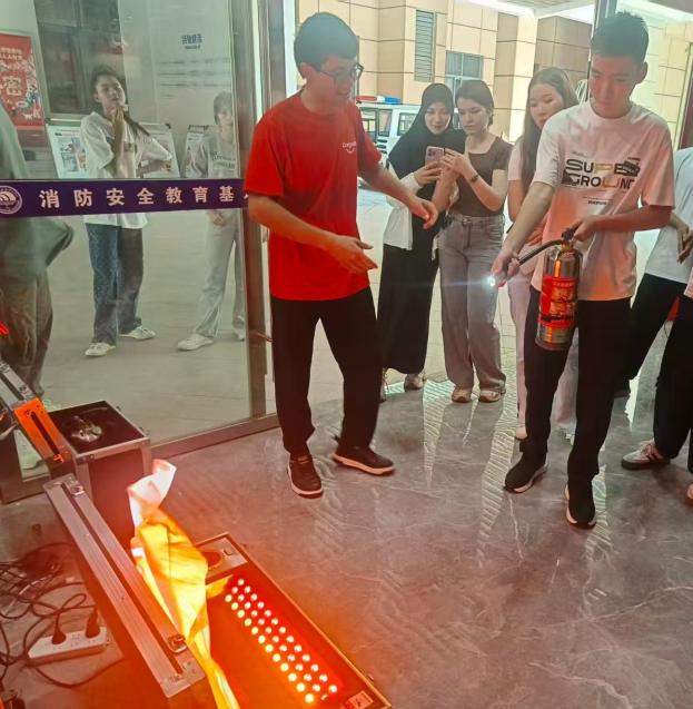 华侨物业陶方春对留学生进行消防知识培训以及学校消防应急文化传播。同时对留学生进行灭火器实操使用抽查。